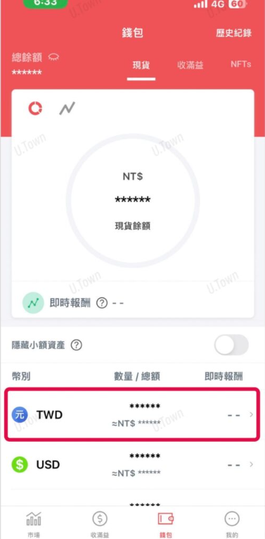 1.完成MaiCoin身份认证(KYC),点击App右下方钱包,点击新台币TWD
